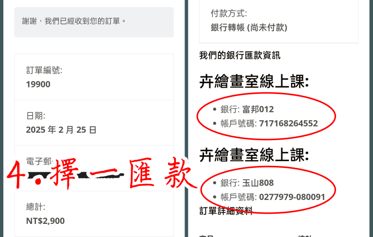 匯款後,截圖畫面發送至FB官方粉絲團/卉繪LINE官方